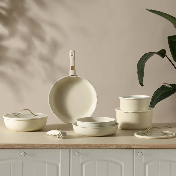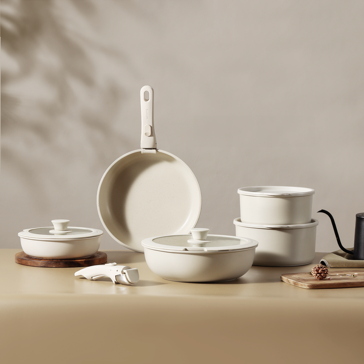5-Piece Nonstick Cookware Set with Detachable Handles - White