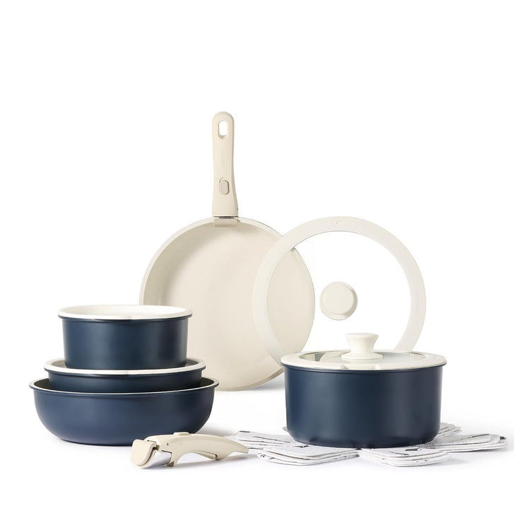 15-Piece Nonstick Cookware Set with Detachable Handles - Dark Blue