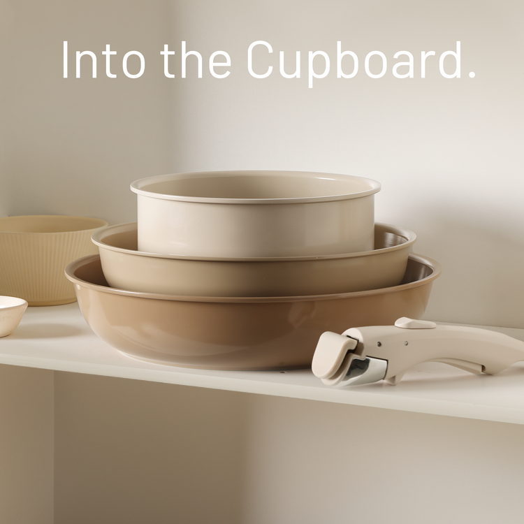 15-Piece Nonstick Cookware Set with Detachable Handles Taupe