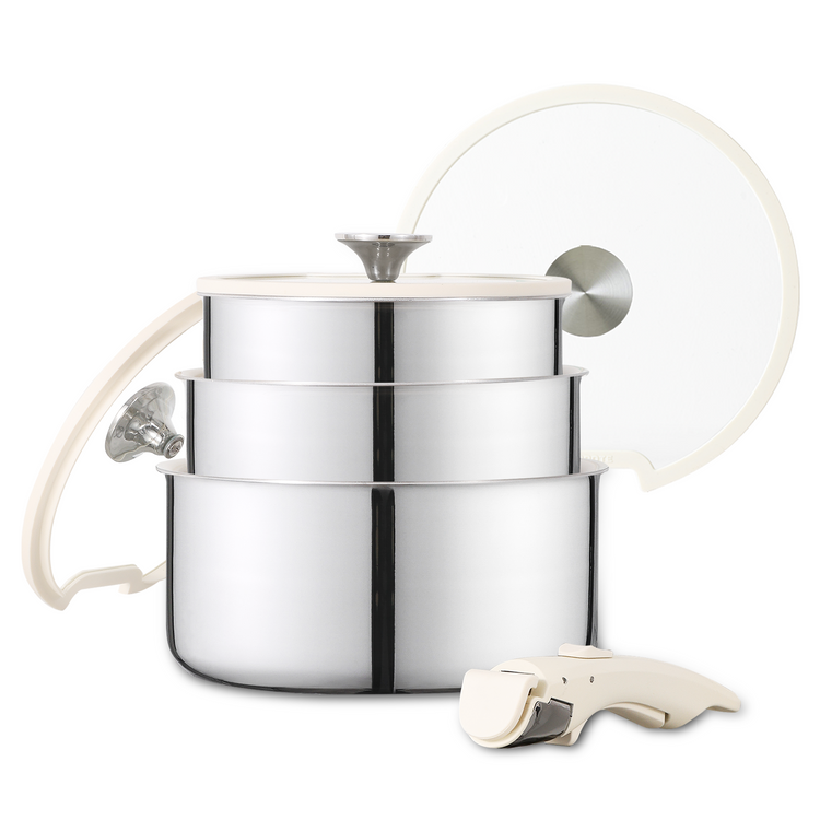 7 pcs Stainless Steel Pots and Pans Set with Removable Handle
