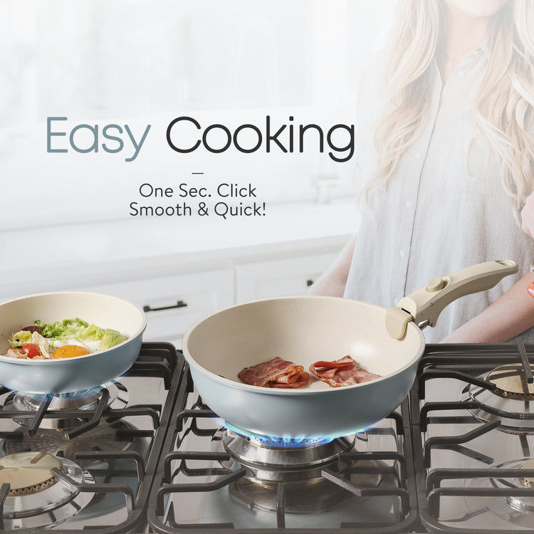 11pcs Pots and Pans Set, Nonstick Cookware Set Detachable Handle, Blue